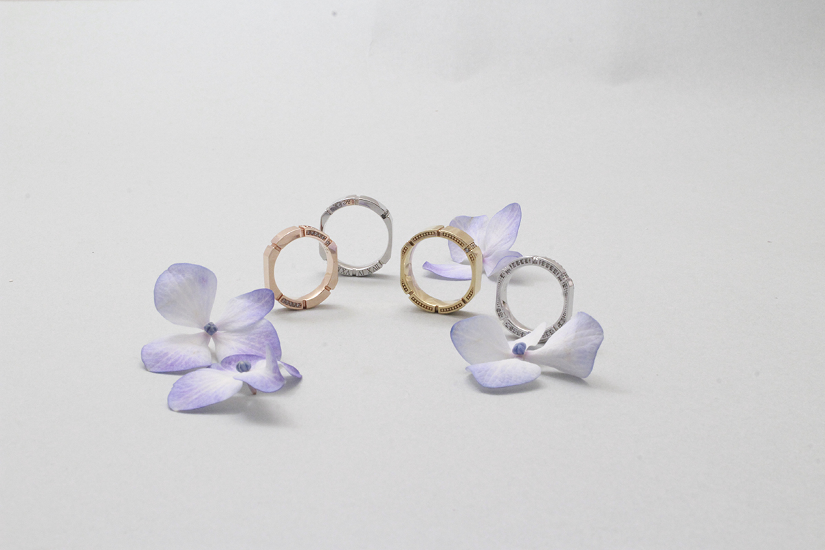 밴드의 디자인은 견고하고 강력한 인연과 결속을 상징하는 강렬함을 냈으며. 밴드의 옆면, 손가락 사이가 닫는 부분을 과감하게 컷팅하여 편안한 착용감을 주었습니다.