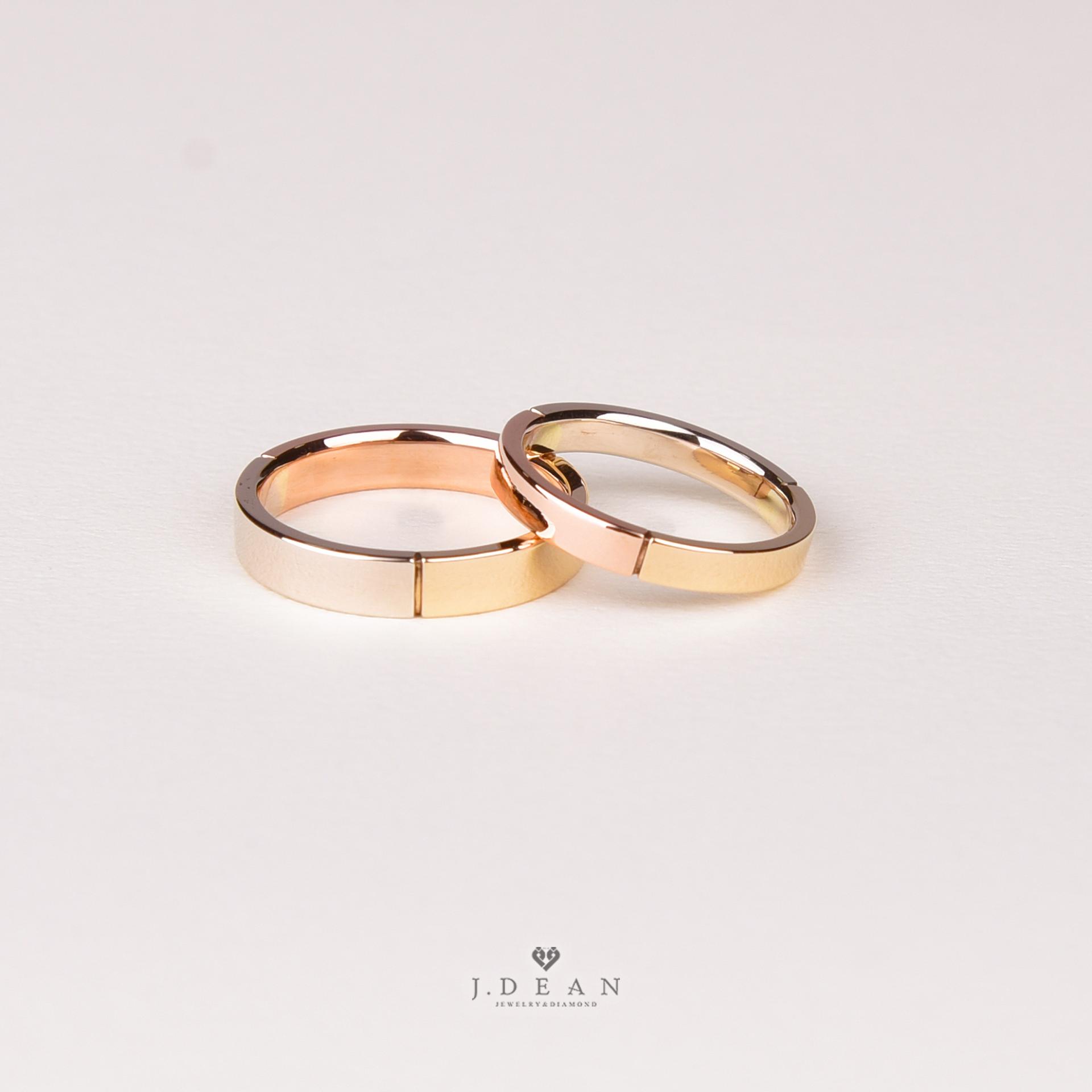 남자반지를 화이트로 제작 후 한 부분을 분리하여 여자반지 함께하고 여자반지도 핑크골드로 제작 후 한 부분을 분리하여 남자반지에 함께하였습니다.